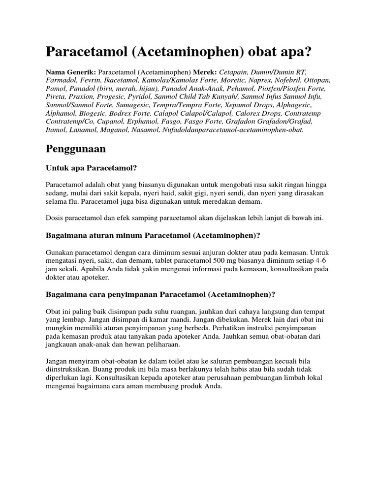 Paracetamol (Acetaminophen) obat apa?: Penggunaan